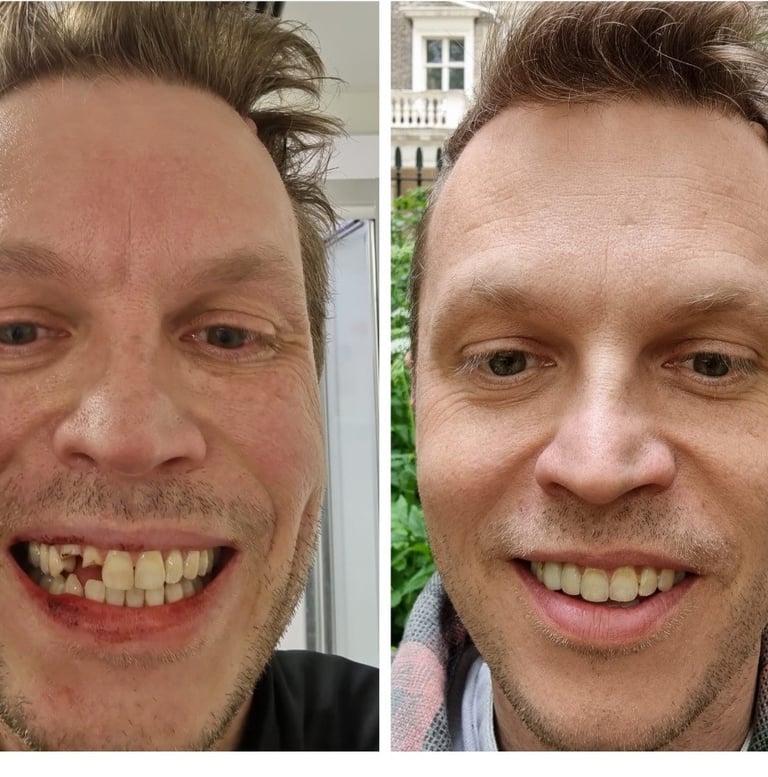 After a fall whilst running, Johan's smile was brought back to it's full glory by Tina Panum at Pure Smile Bethnal Green. Art Tech Dental Ceramics fabricated a custom post and core restoration, along with two layered zirconia crowns and a custom shade take at the lab.